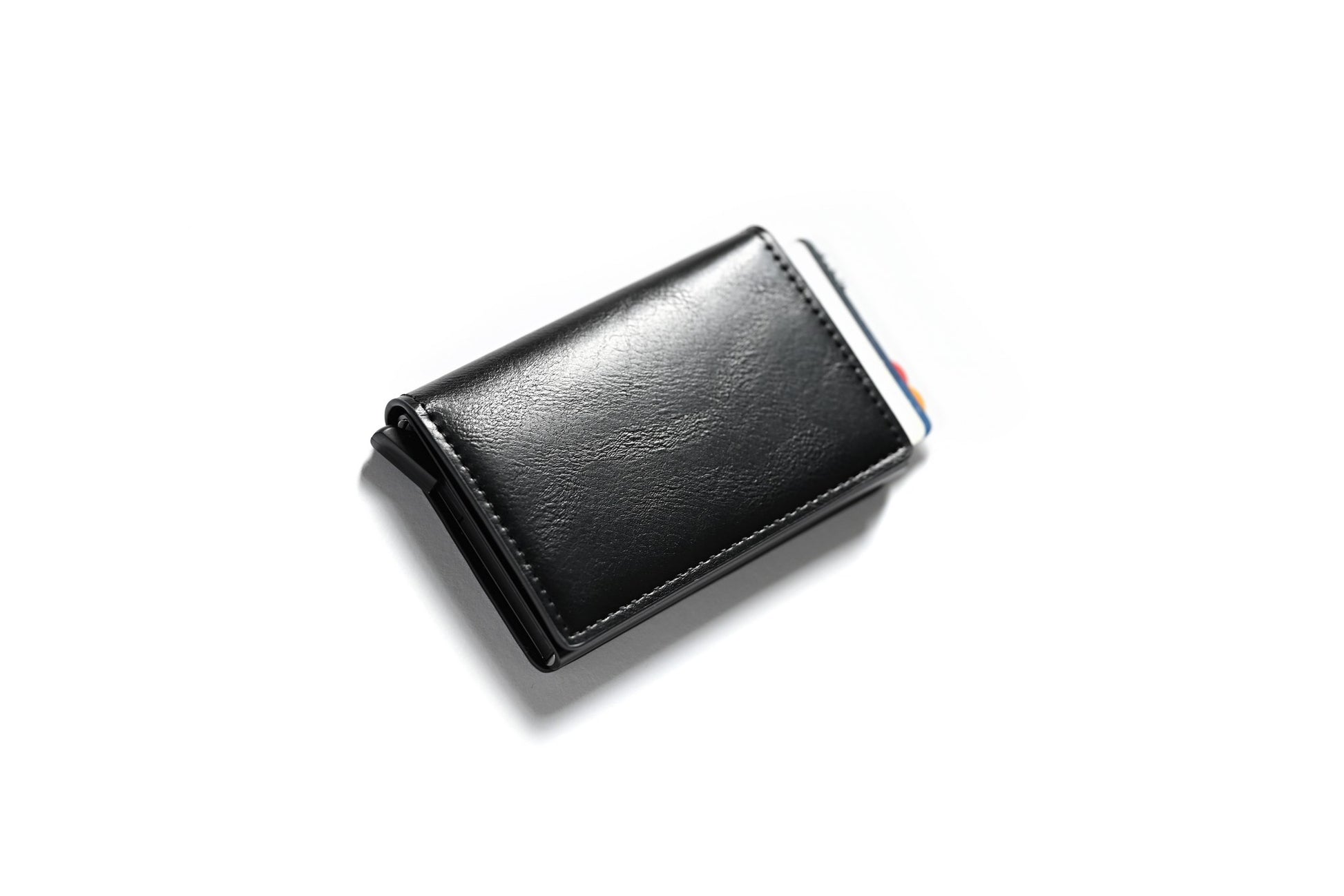 Tämä ohut Leather Card Case - Lompakko kulkeutuu vaivatta mukanasi ja pitää korttisi järjestyksessä. Kortteja voit pitää mukautuvasti lompakossa 1-6 kappaletta RFID-suojattuna. Kotelon ympärillä on lisätilaa korteille, seteleille ja kuiteille.